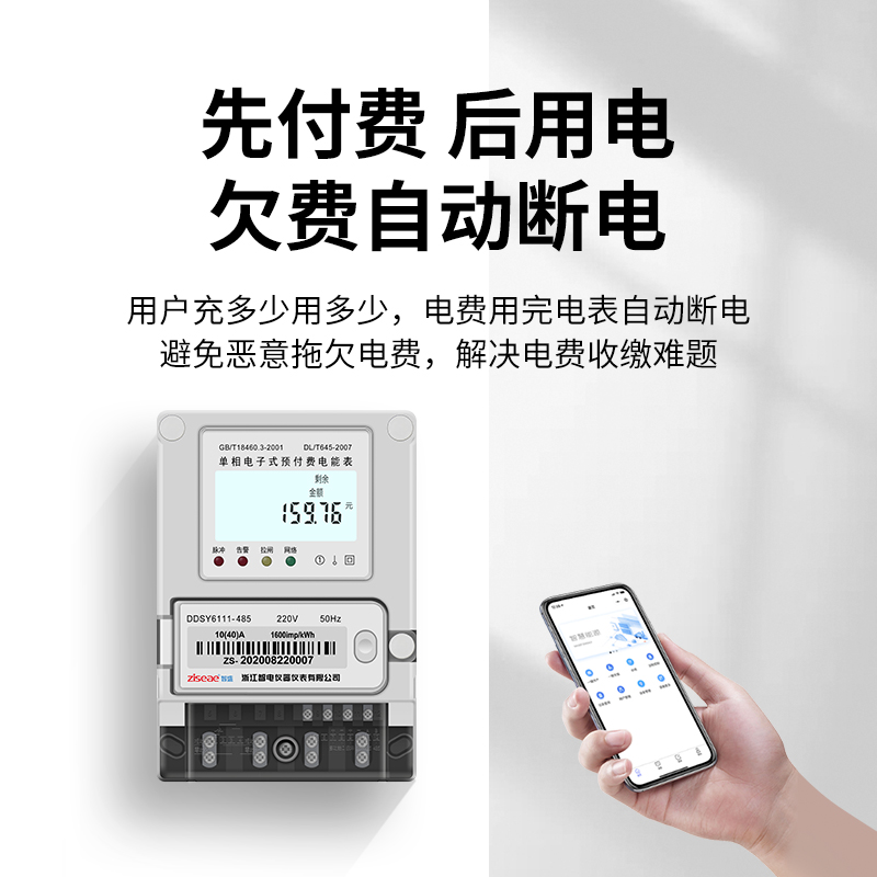 預(yù)付費(fèi)電表,與常規(guī)通信裝置組網(wǎng),或通過4G,NB等通信方式,將監(jiān)測(cè)數(shù)據(jù)上傳至預(yù)付費(fèi)管理系統(tǒng),通過微信小程序進(jìn)行繳費(fèi)管理.。