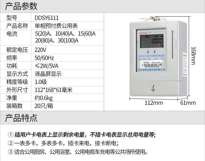 DDSY6111型電子式單相插卡預(yù)付費(fèi)電表,采用集成電路設(shè)計(jì),全自動表面貼裝(SMT)生產(chǎn)工藝制造。電能表的線路設(shè)計(jì)和元器件選擇以較大的環(huán)境允差為依據(jù),可保證整機(jī)穩(wěn)定工作,精度高、高過載、低功耗,可靠性能高。內(nèi)置磁保持繼電器。通過控制繼電器實(shí)現(xiàn)控制負(fù)載的通與斷,實(shí)現(xiàn)督促用戶先買電后用電的功能。